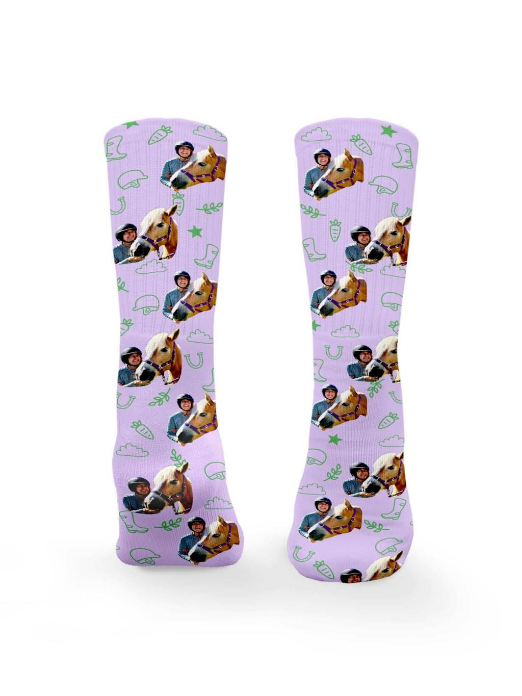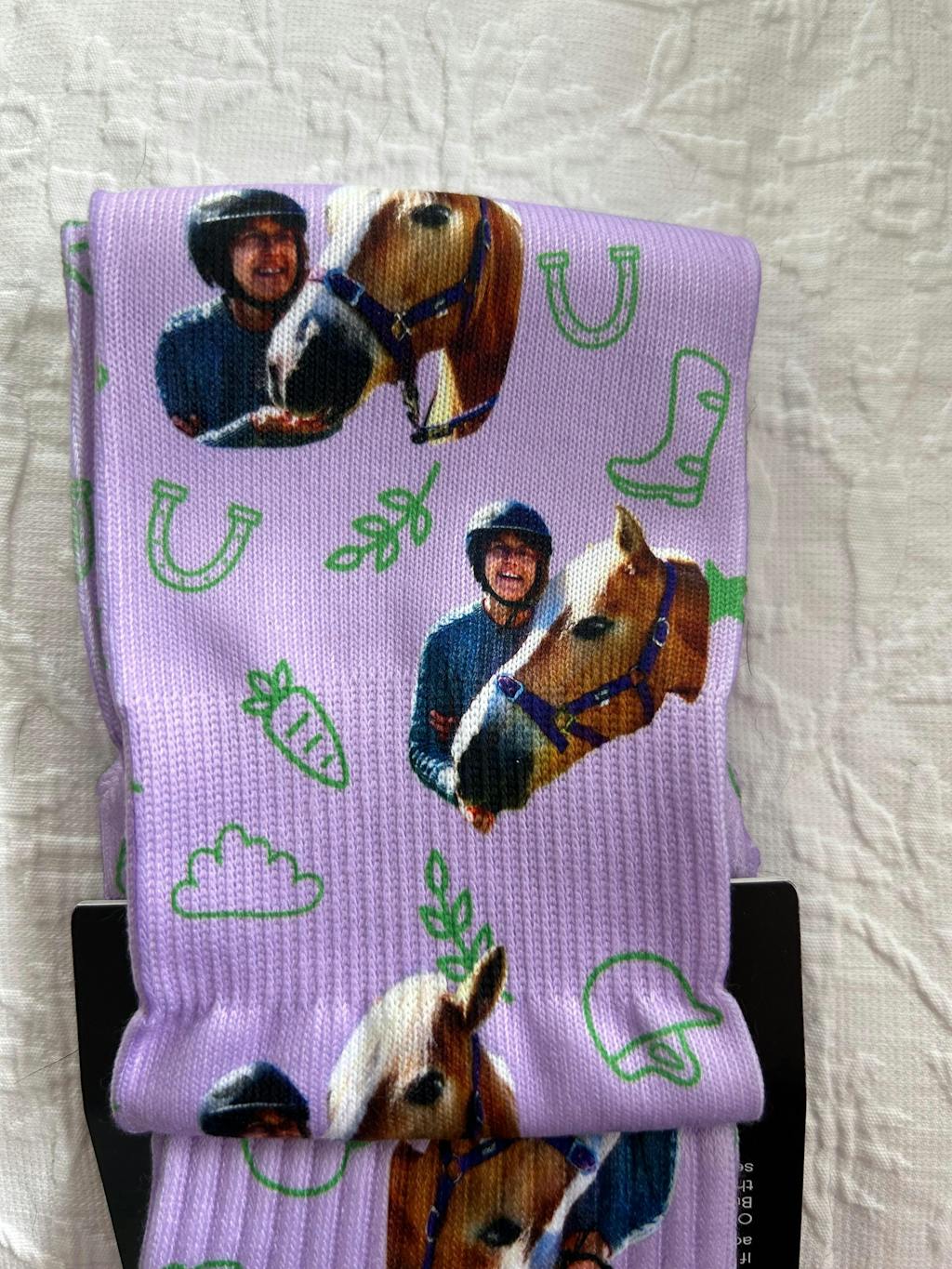 I was hoping that a photo with me standing at face level with my horse could include both of us. The upload automatically did find both our faces but it didn’t include my shirt so I asked the Furriends team for help. The response was fast and wonderfully cheerful as I explained that the horse I was with “ juiced” her carrots and the photos were a challenge to get. 😆 And the socks are fantastic!! Thank you so much.